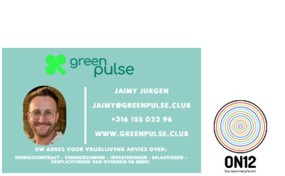 Jaimy is enthousiast over ON12: “Waarom ik er graag bij wil, komt vooral door de open en hartelijke sfeer. Aangegeven is dat het er bij ON12 vooral om gaat elkaar te helpen als lokale ondernemers. Dat is ook voor mij echt heel belangrijk. Zeker omdat ik met Kirchroa Tropical “samen de schouders eronder zetten” ook verkondig via Instagram. Dit wil ik ook met mijn eigen bedrijf Green Pulse.”